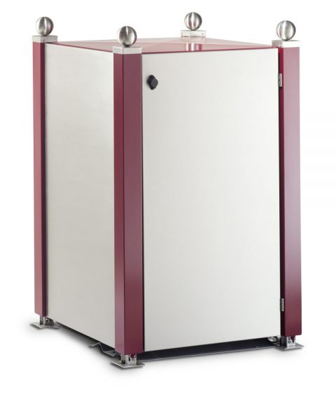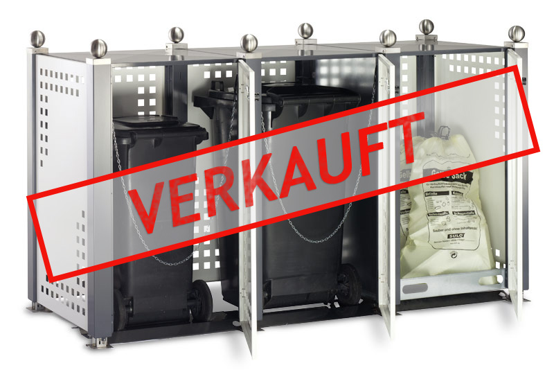 - Ausführung in Edelstahl, für Tonnengröße 240 l, Pfosten rot pulverbeschichtet